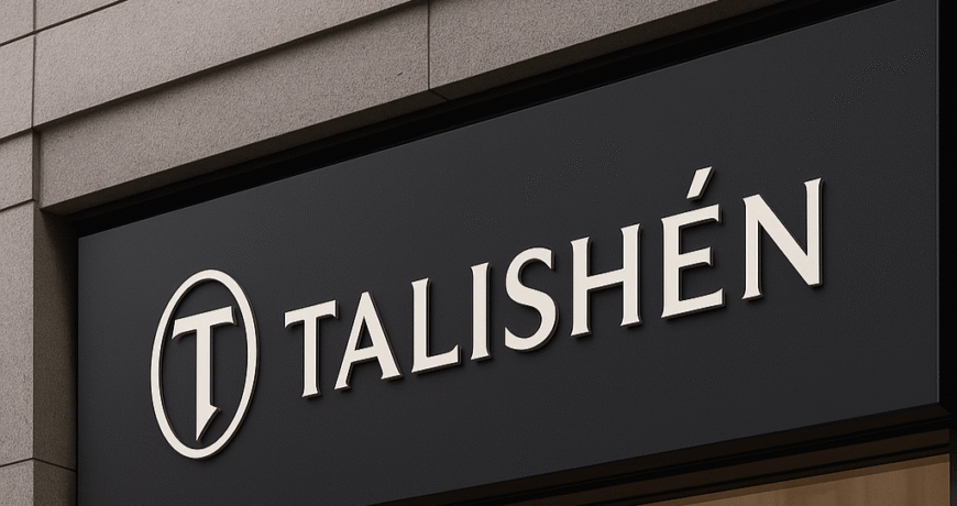 The TALISHÉN™ crest seal repeats in large spacing across material —