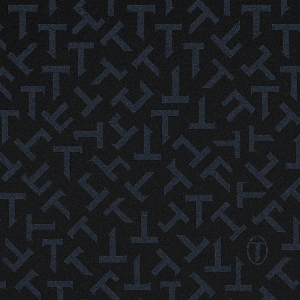 Repeating “T” glyph built as a blade-fin symbol.