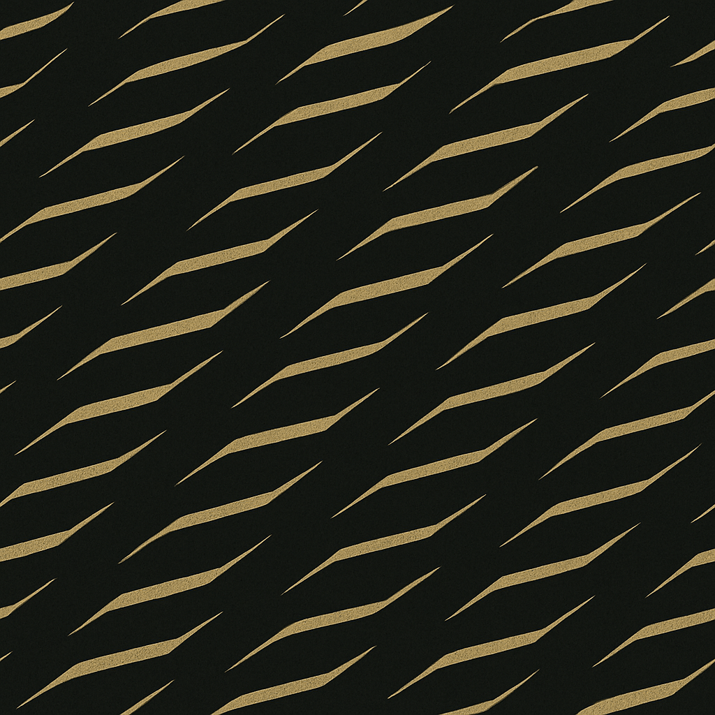 Repeating ribbon-like strokes — but sliced, angular, interwoven.