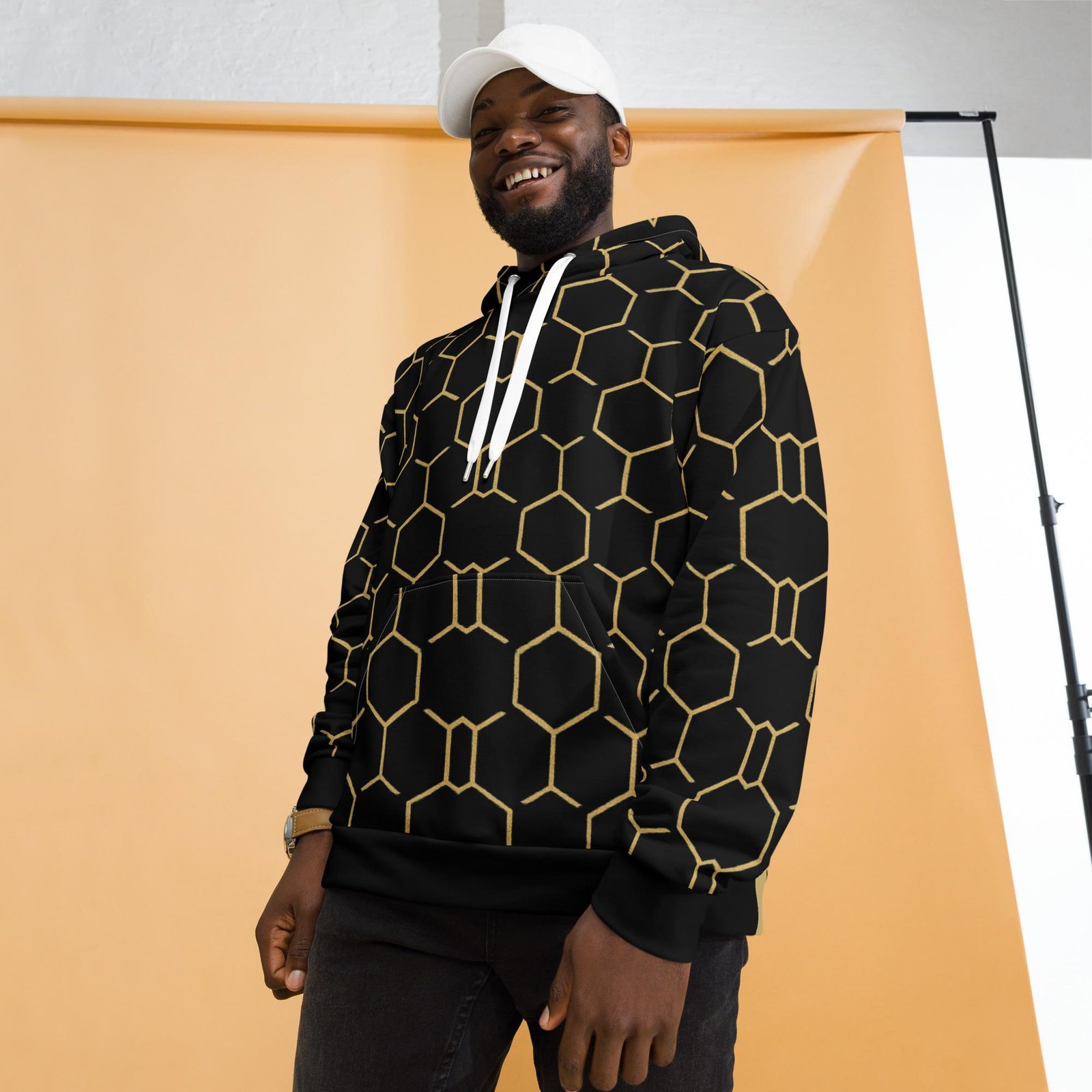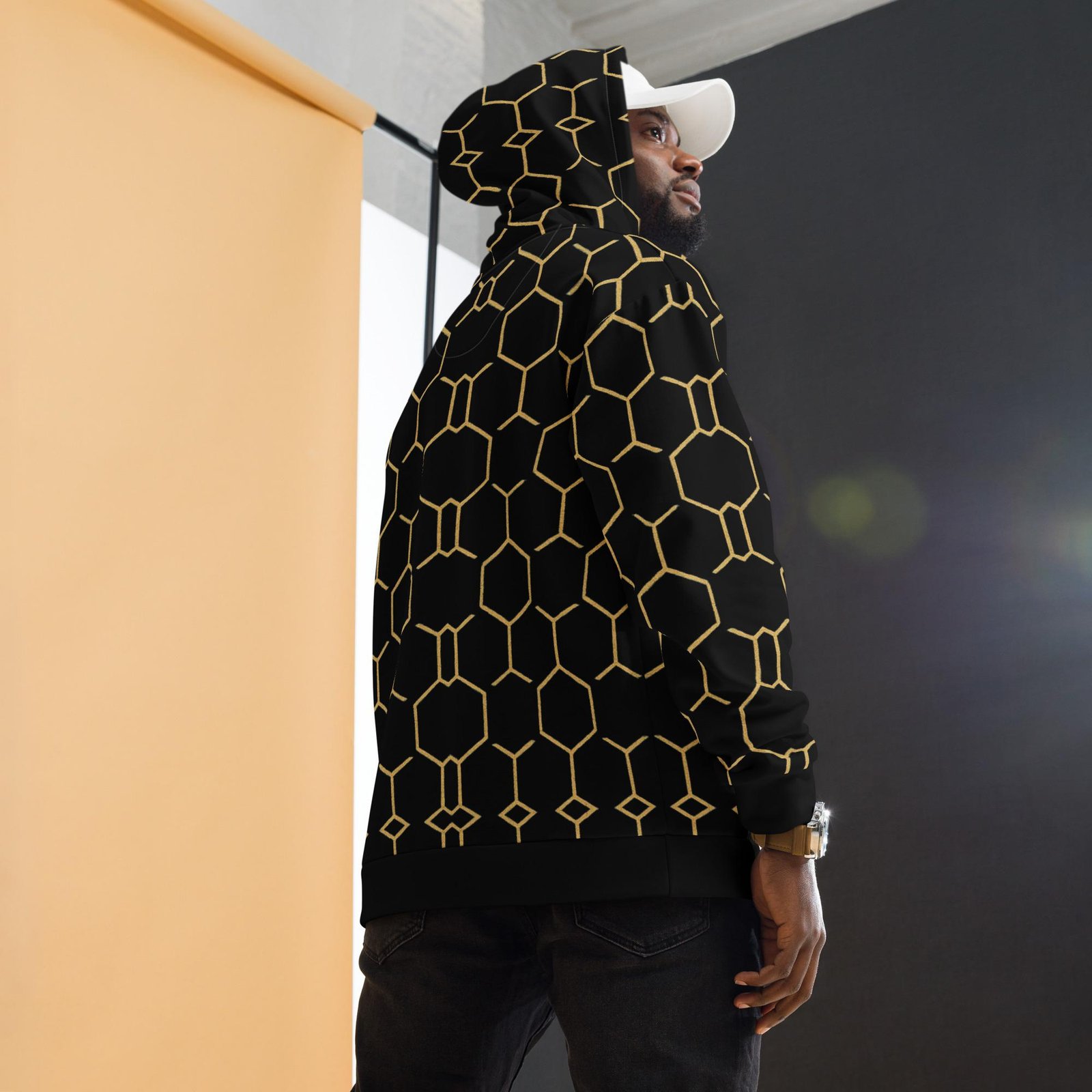 Talishén: Steel Spine Hex Pattern – Unisex Hoodie – Black & Gold