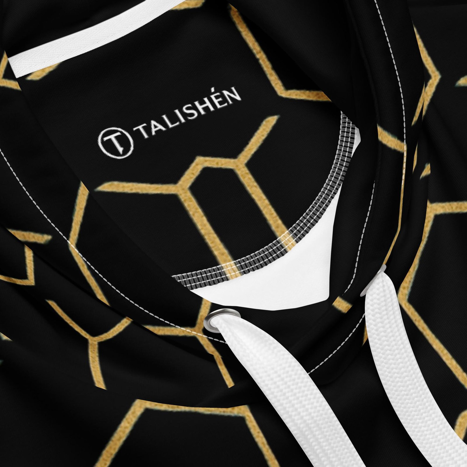 Be the first to review “Talishén: Steel Spine Hex Pattern – Unisex Hoodie – Black & Gold”