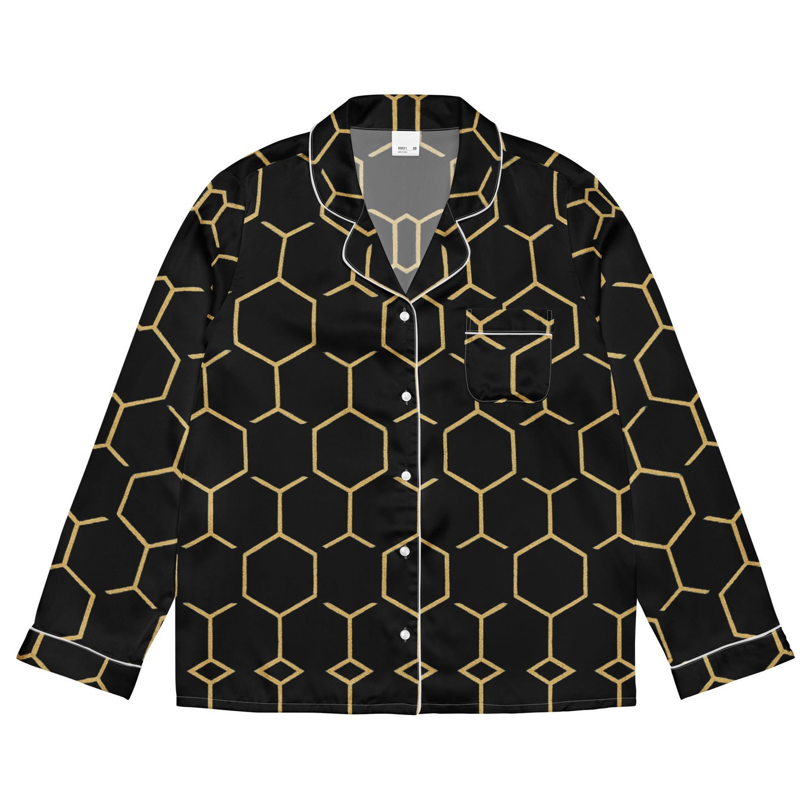 Talishén: Steel Spine Hex Pattern – Women’s long sleeve pajama top – Black & Gold